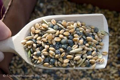 Bei diesem Markt im Museumsdorf stehen selten gewordene Lebensmittel und vom Aussterben…